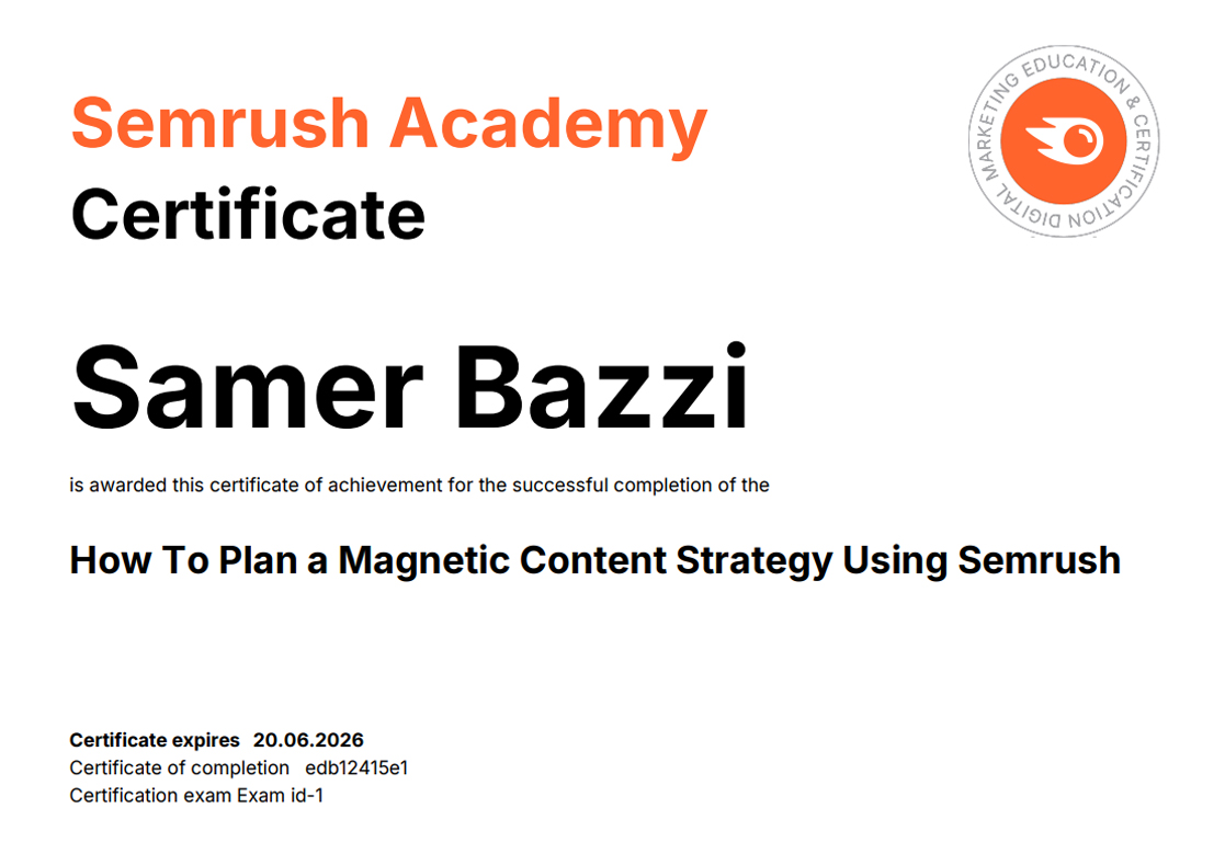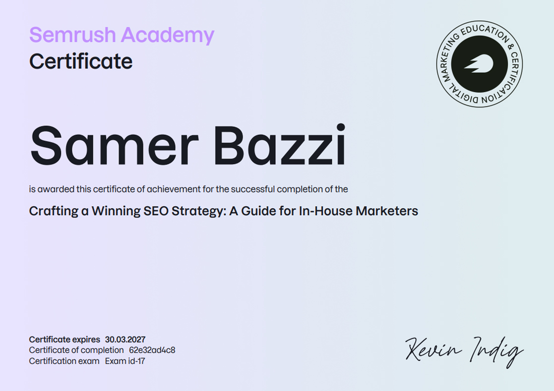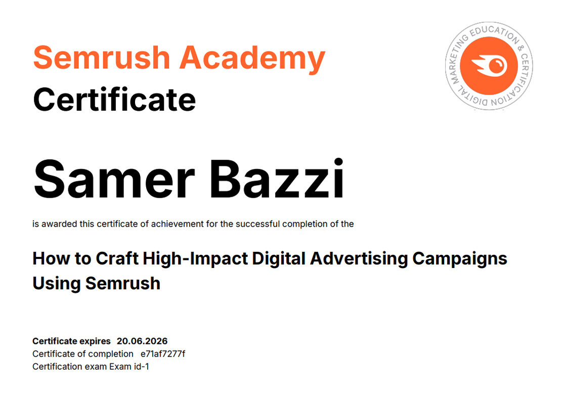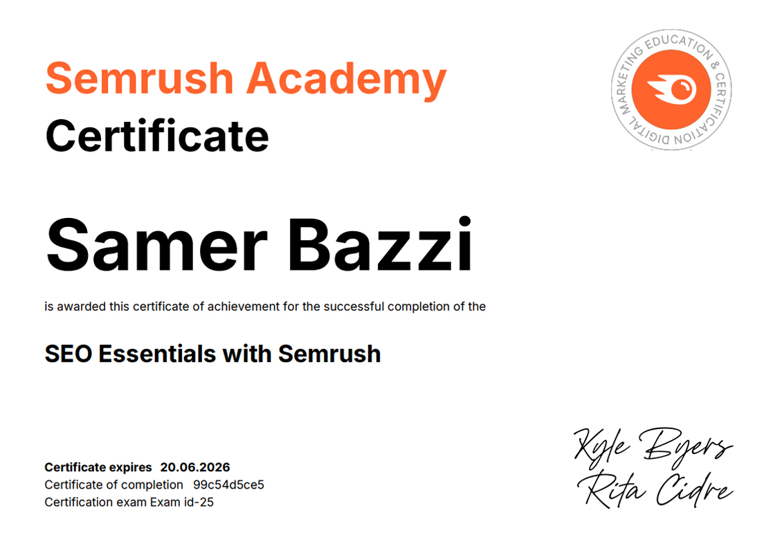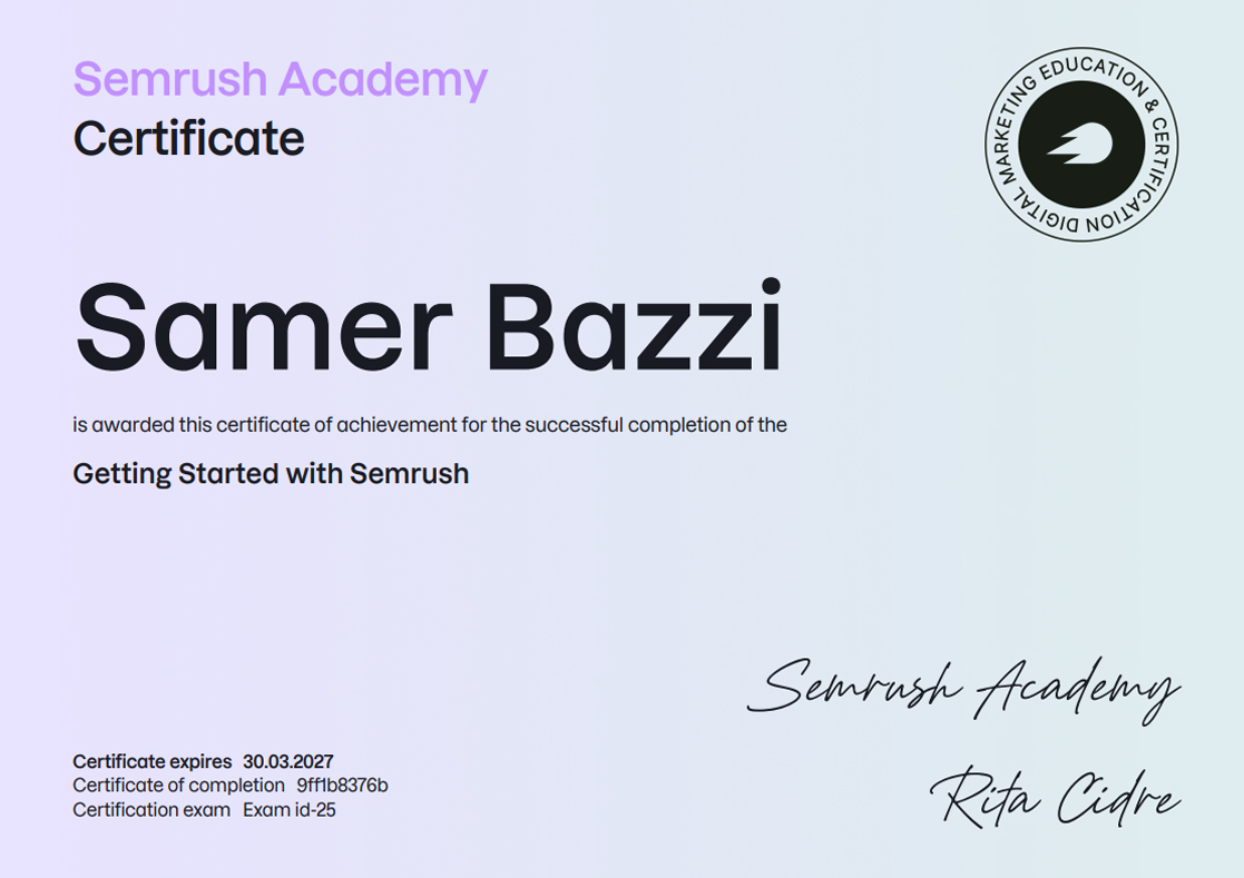 SEMRUSH CERTIFICATIONS [38]