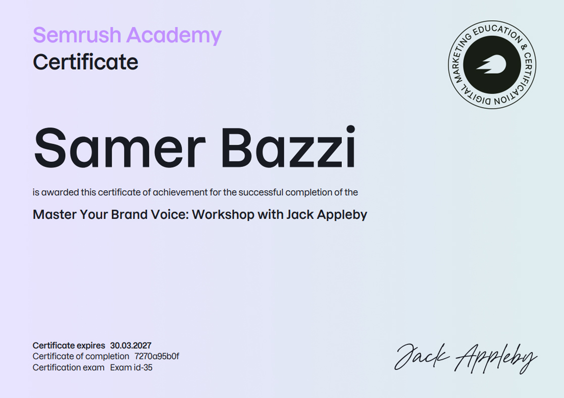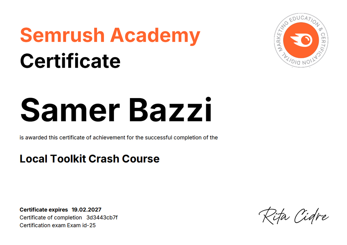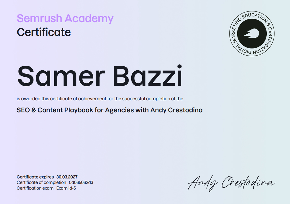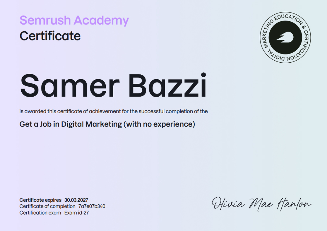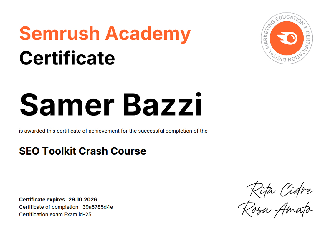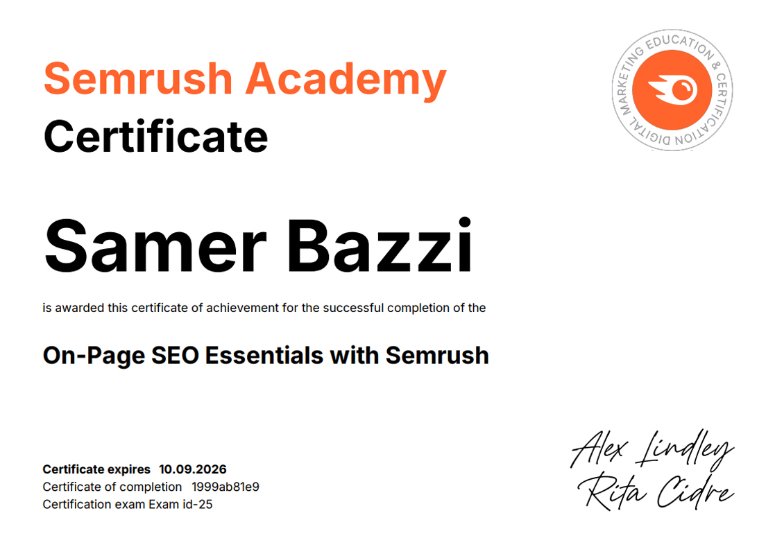 SEMRUSH CERTIFICATIONS [38]