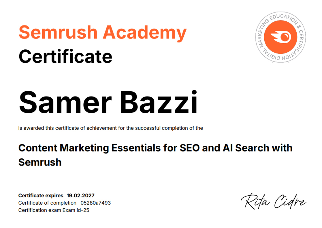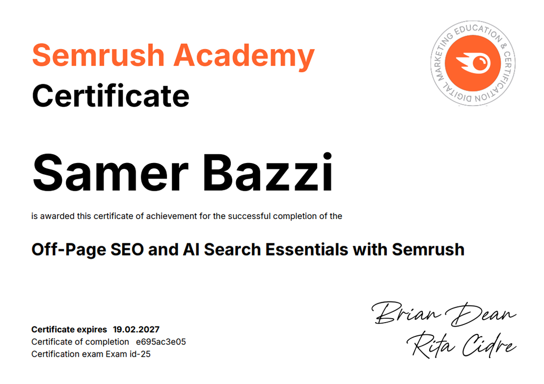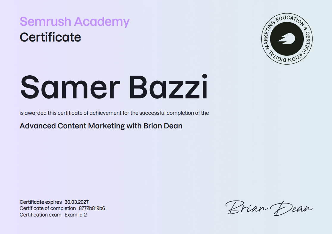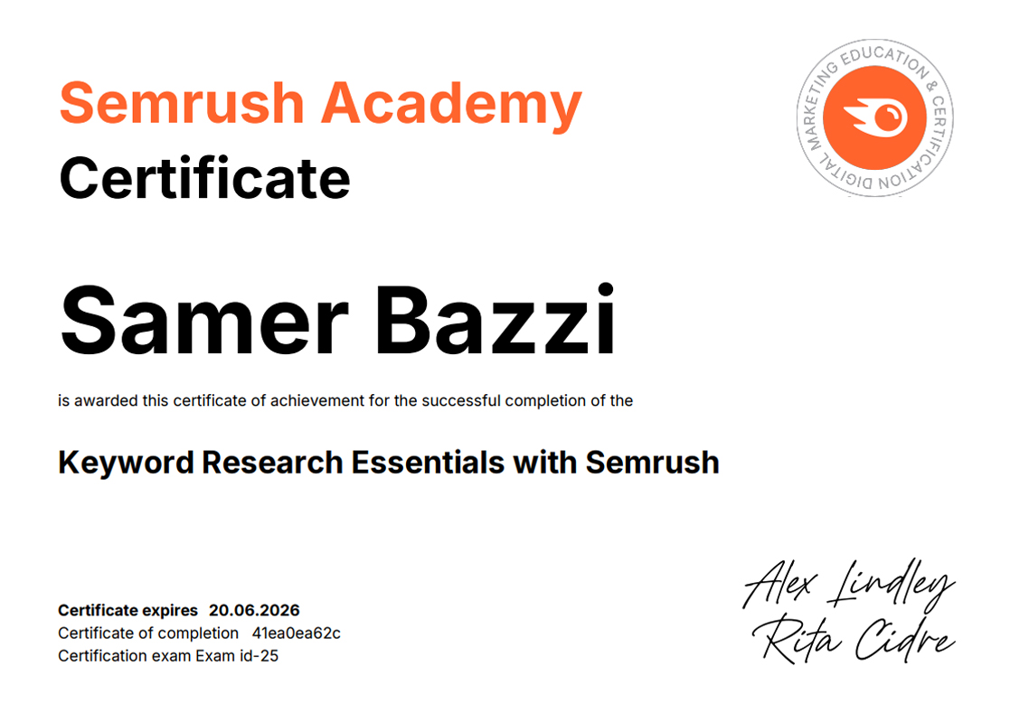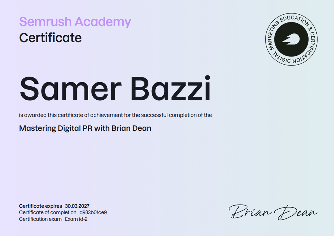 SEMRUSH CERTIFICATIONS [38]